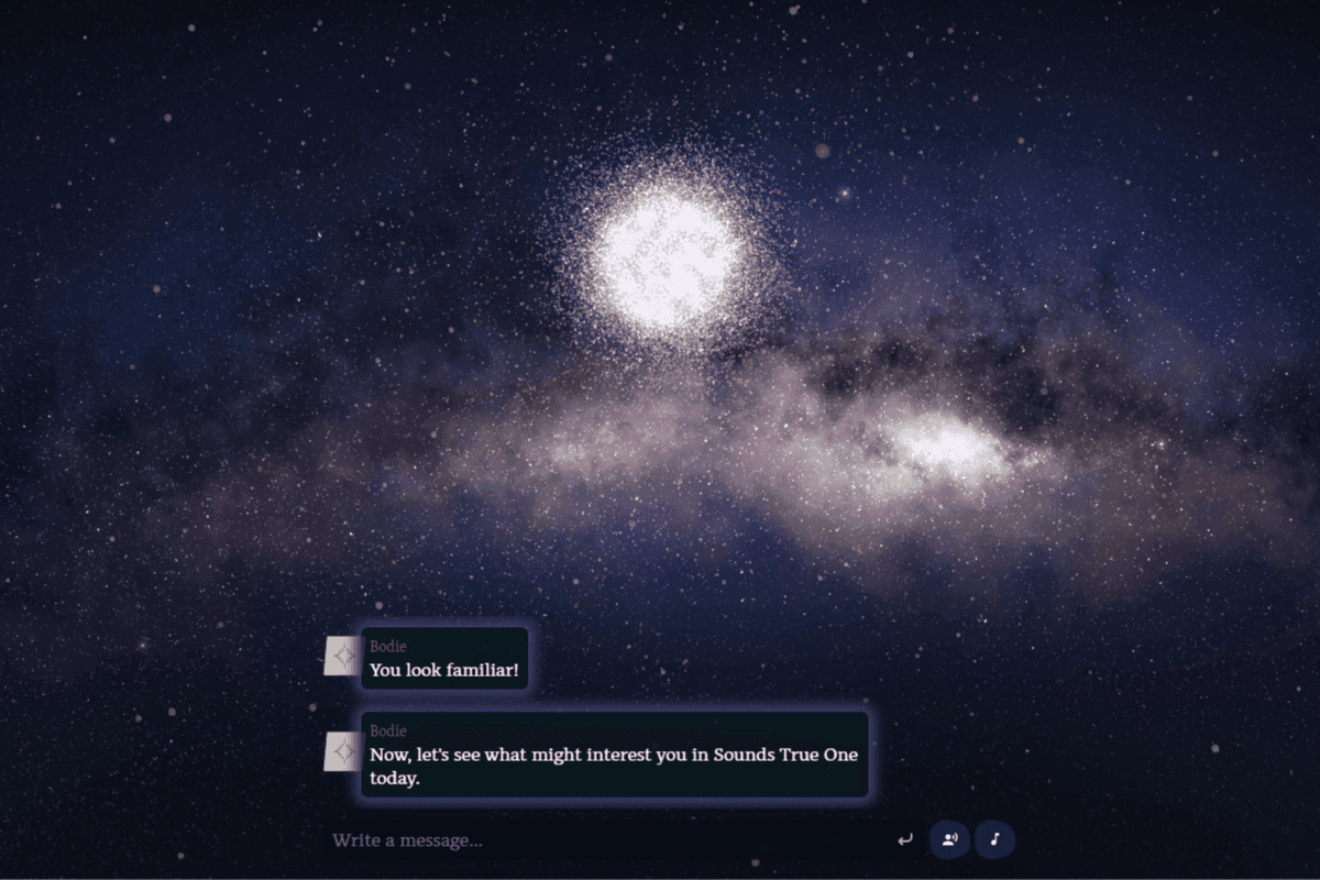 Leveraging Charisma’s unique AI platform has enabled Sounds True to produce a differentiated, high value digital product for their customers. With up to 500 unique users each week since the soft-launch of Sounds True One in late 2022, and average session times over 8 minutes per visit, Bodie broadens the reach of and deepens engagement with Sounds True One content.